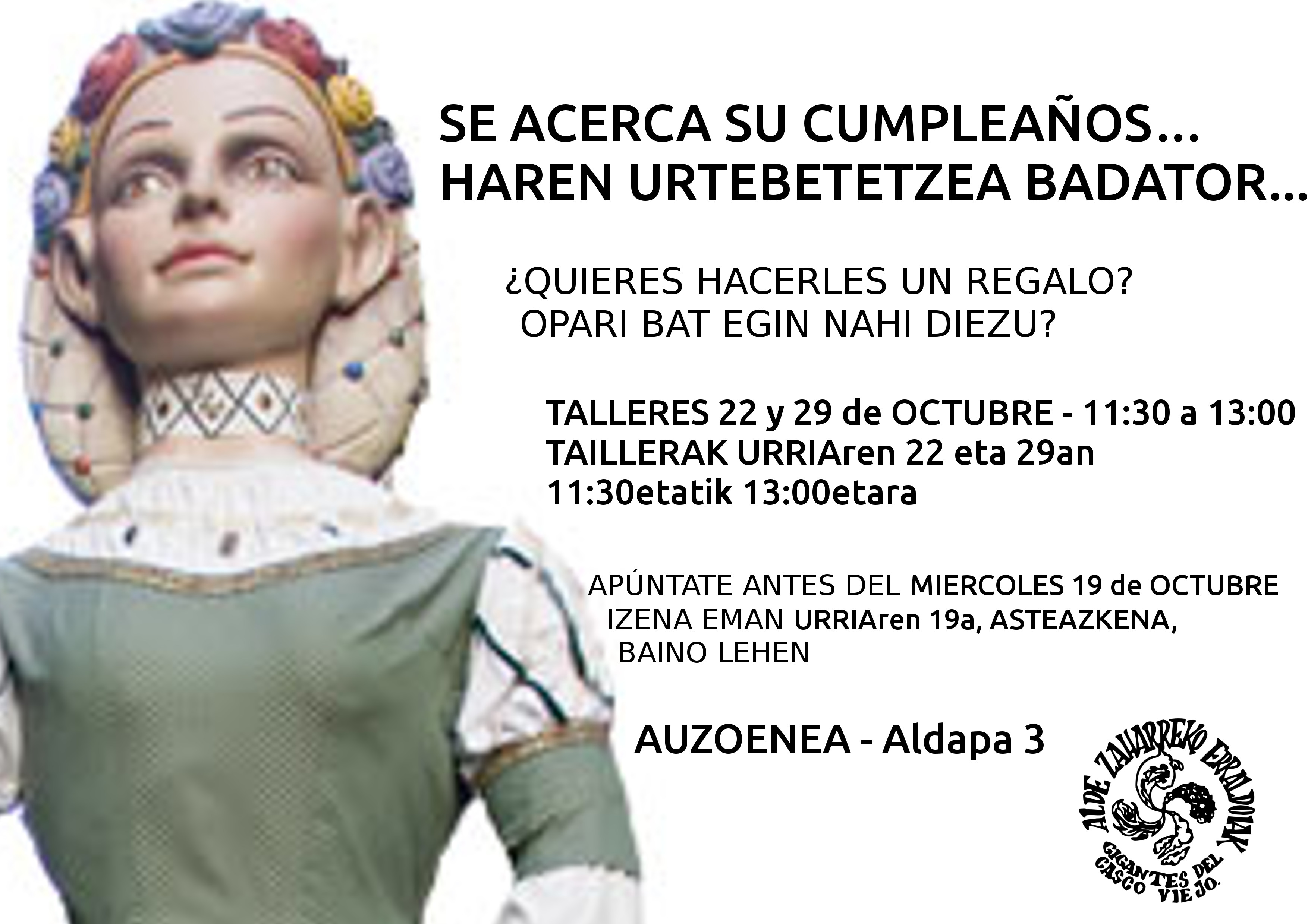 Los días 23, 24 y 25 de septiembre se van a celebrar los Sanfermines de Aldapa. Desde el próximo enlace podéis descargar el programa de actos que ha elaborado la Comisión de Fiestas del Casco Viejo.